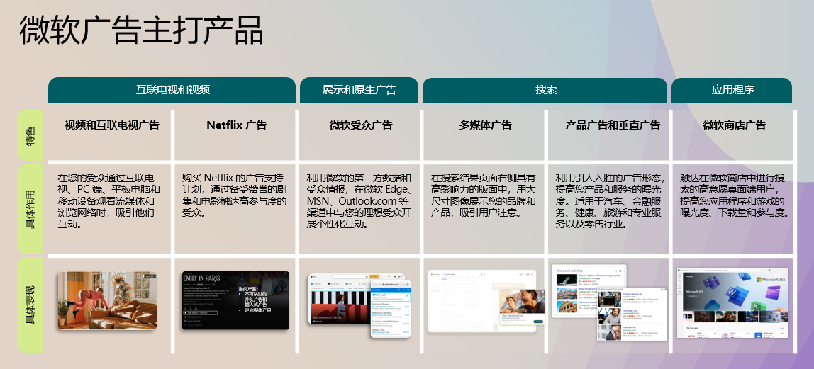 精准理解客户。主流流媒体网络加上微软的受众网络,能够帮助广告主增加广告的掌控度,精准投放给目标客户。广告主可以从超过70多种节目类型中按需选择,同时结合微软独有的一方数据和受众意图数据,让广告在合适的时间和场景触达目标受众。